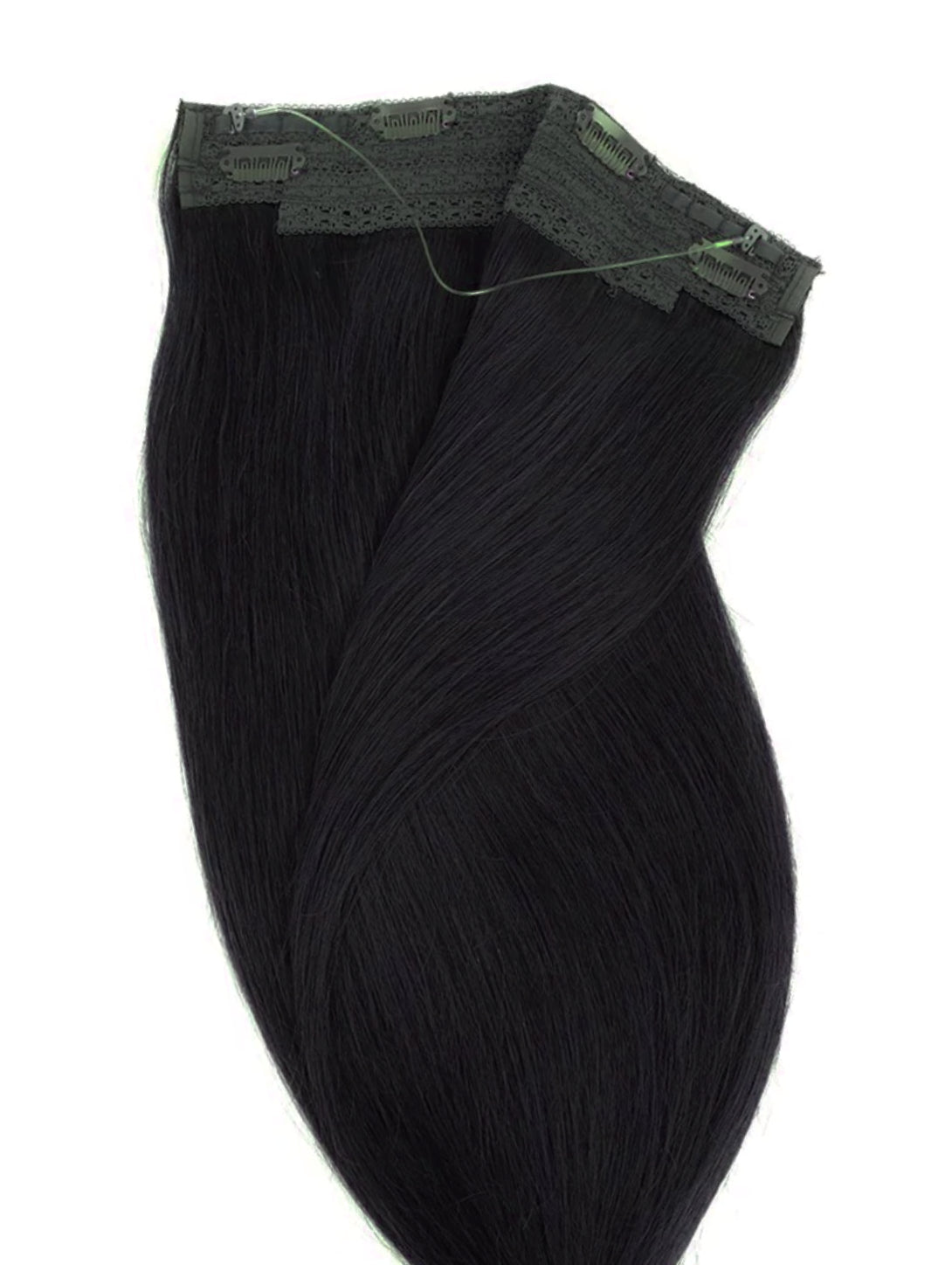#1 EBONY JET BLACK FLIP HALO HAIR EXTENSIONS