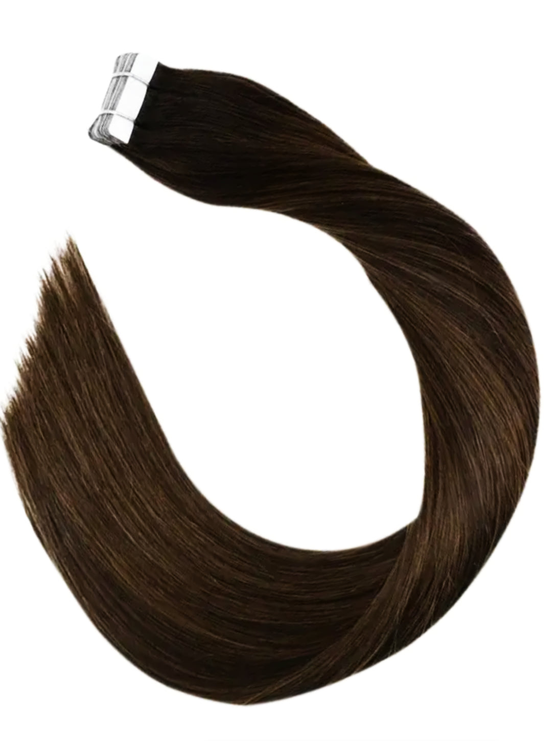 Our tape hair extensions feature a rich transition from darkest brown roots to a beautiful medium brown balayage. This seamless blend creates a naturally sun-kissed look, adding depth and dimension to your hair. Perfect for achieving effortless volume and length, these extensions are designed for a flawless, natural finish.
