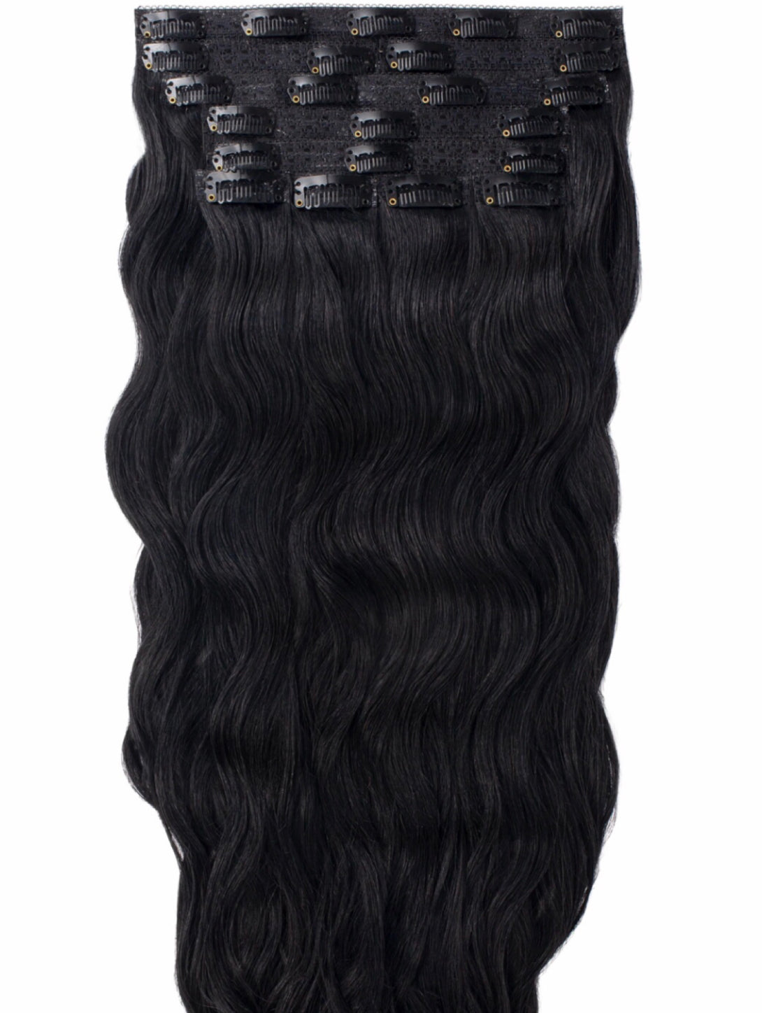 #1 BLACK WAVY CLIP IN HAIR EXTENSIONS