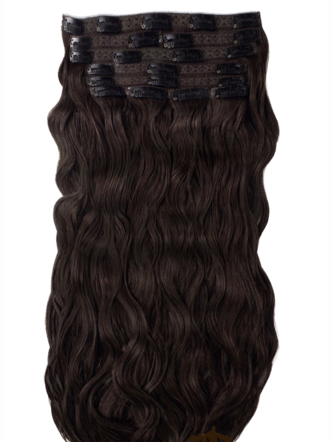 #2 DARK BROWN WAVY CLIP IN HAIR EXTENSIONS