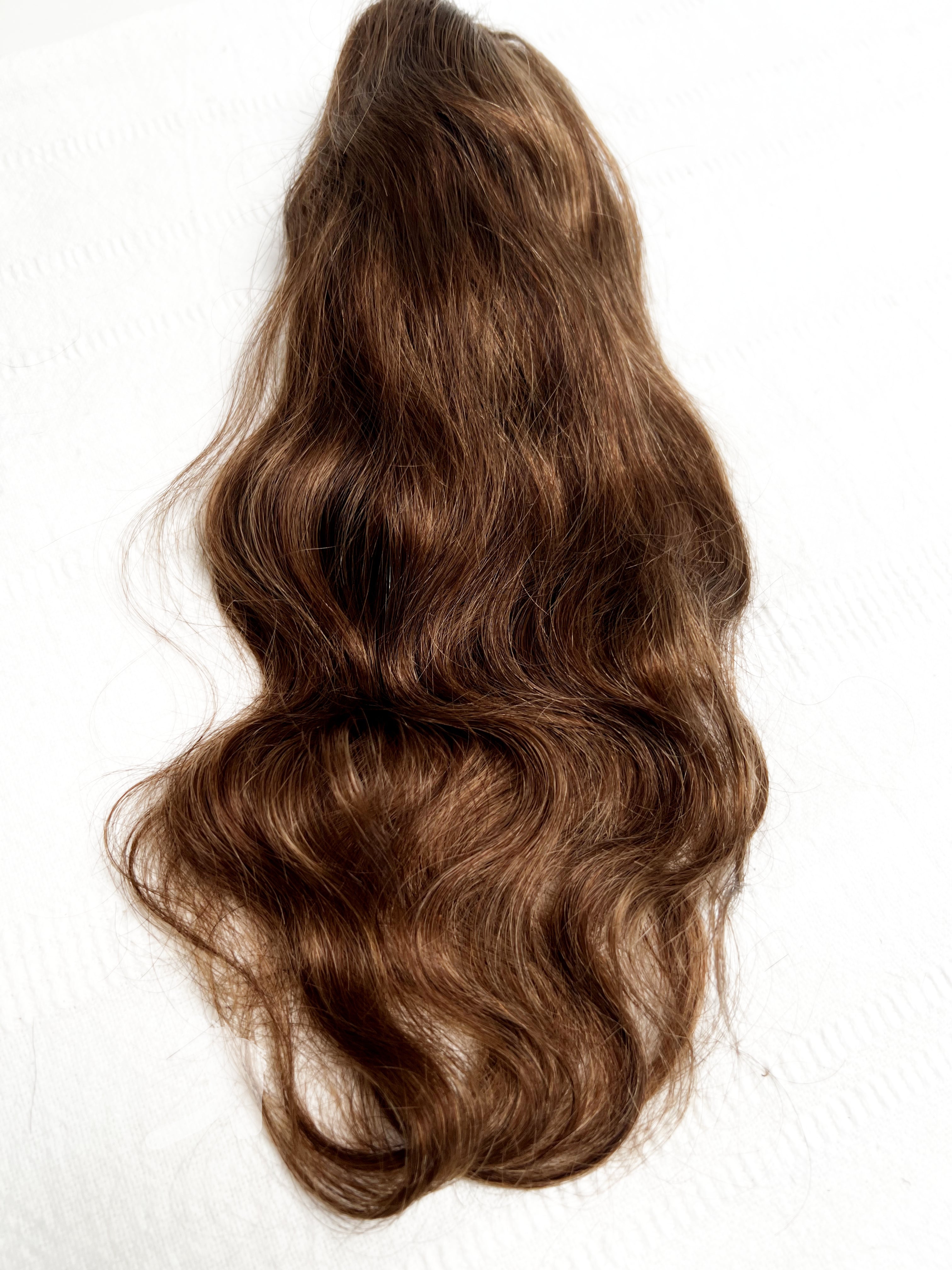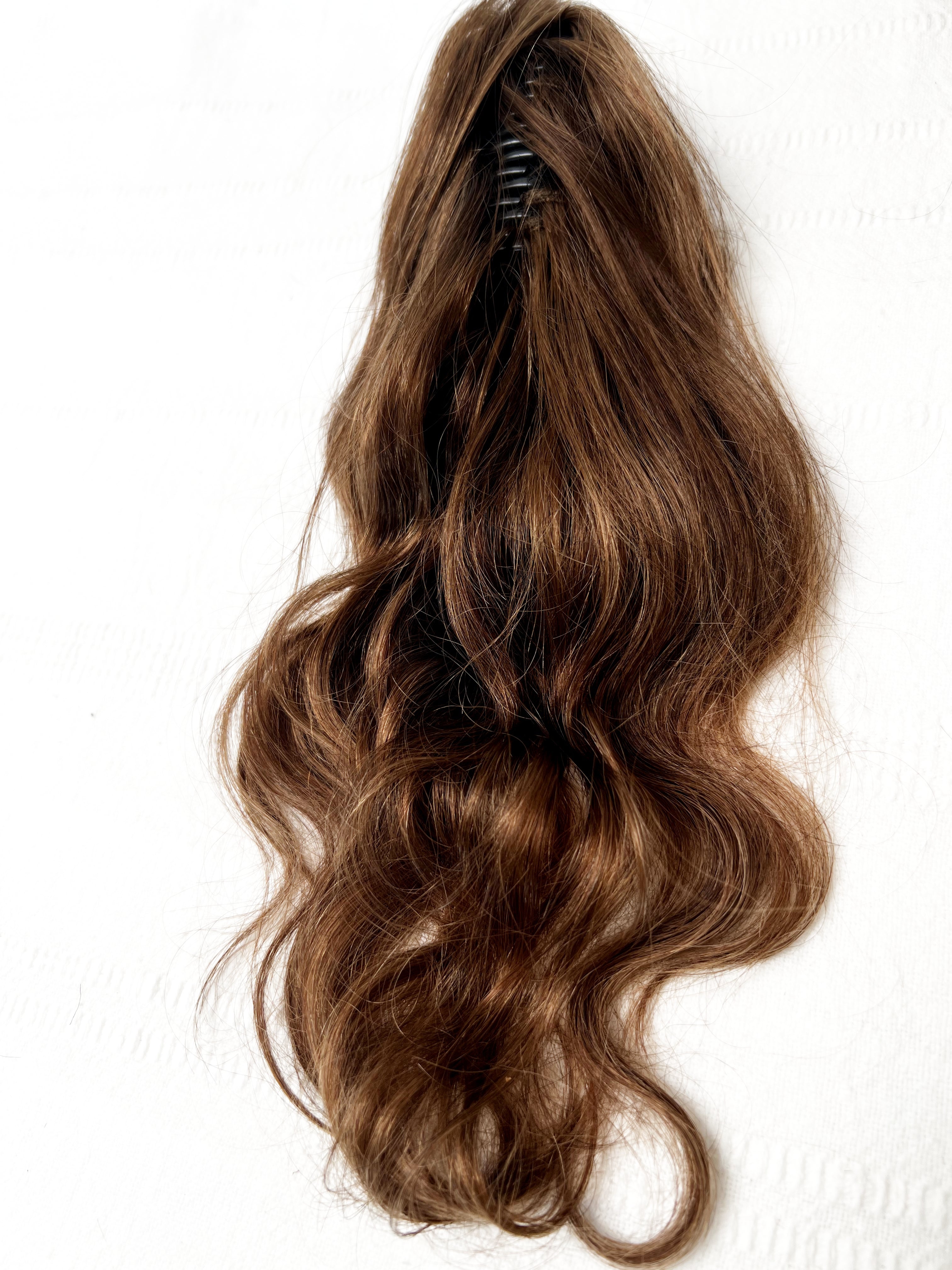 #5 AUBURN BROWN WAVY 100% REMY HUMAN HAIR CLIP IN PONYTAIL - 18"
