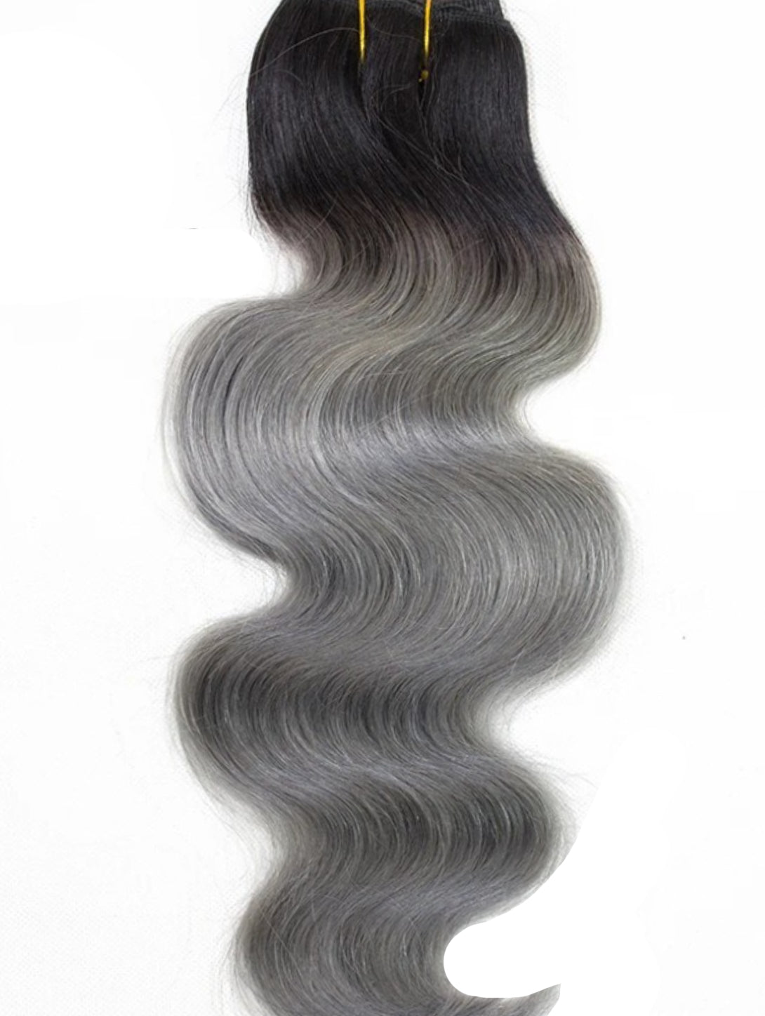 BLACK TO GREY ROOT STRETCH BALAYAGE CLIP IN HAIR EXTENSIONS